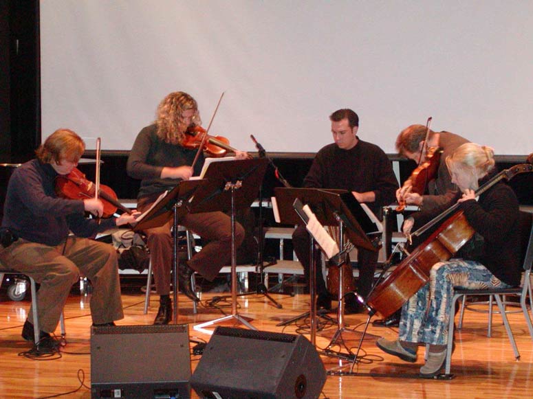 Ethel, with percussionist Brad Draper, performing "Strange Humors" November 2002, Perpich Center for the Arts, Minneapolis, MN