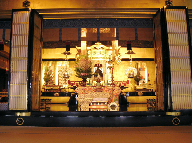 Next stop: Higashi-Honganji temple. These temples were originally built in 1272, and rebuilt in 1895. (Can you spot AEJ in this photo?) The structure to the right is not a new building, but actually a temporary encasing, built to protect a temple that is undergoing restoration.